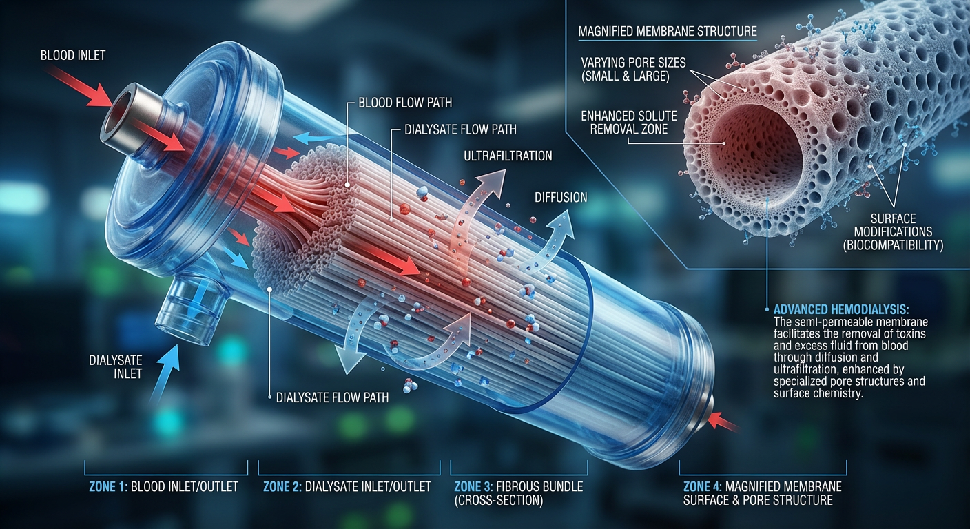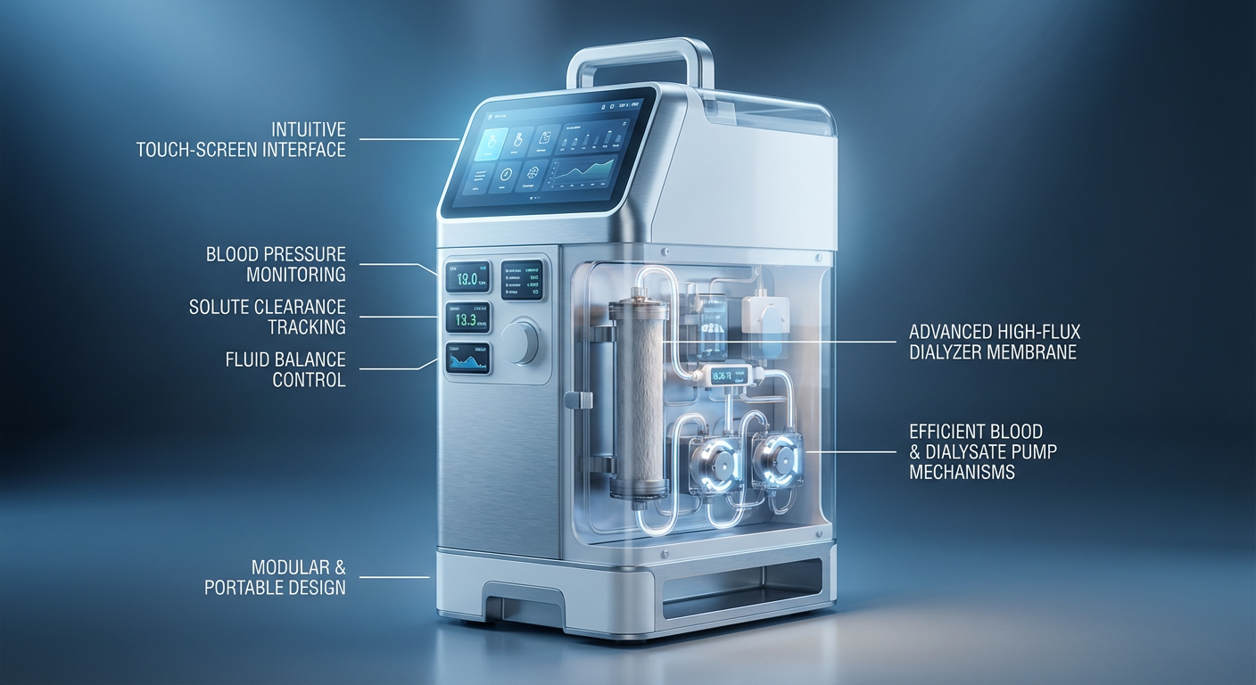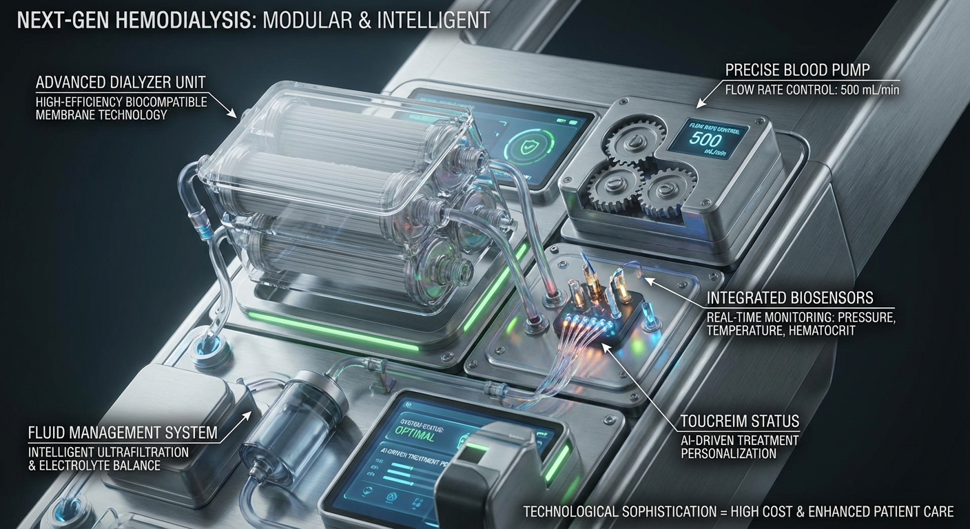 Key advancements center on comprehensive, real-time hemodynamic monitoring, utilizing both invasive and increasingly sophisticated non-invasive methods, including AI-driven predictive analytics, to guide dynamic ultrafiltration and prevent intradialytic hypotension. Biocompatibility is enhanced through novel materials science, employing natural/biomimetic polymers, surface modifications, and biomolecular anticoagulant platforms to mitigate immune activation and reduce thrombogenicity. Precision thermal control, via closed-loop blood temperature matching, actively prevents thermal stress and improves hemodynamic tolerance.