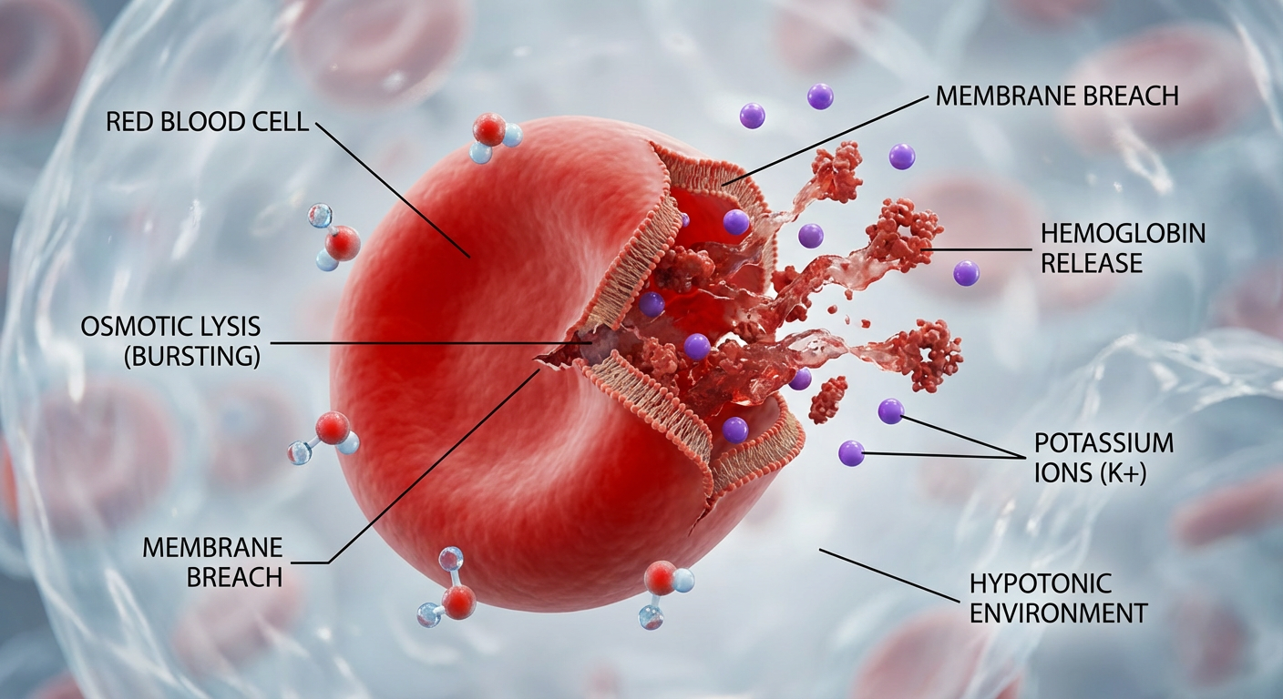 Intravascular hemolysis, regardless of its etiology, directly impacts electrolyte balance. As described in the context of PNH 52 53the lysis of red blood cells releases significant quantities of intracellular potassium and phosphate. In the traditional dialysis setting, hemolysis can occur due to multiple factors: * Mechanical Stress: Shearing forces within the extracorporeal circuit, kinked blood lines, improperly functioning blood pumps, or stenotic access can mechanically damage RBCs. * Osmotic Stress: Errors in dialysate preparation leading to hypo-osmolar dialysate can induce osmotic lysis of RBCs. * Thermal Damage: Overheated dialysate can cause thermal injury and hemolysis. * Chemical Exposure: Contamination of dialysate with chloramines or other oxidizing agents.